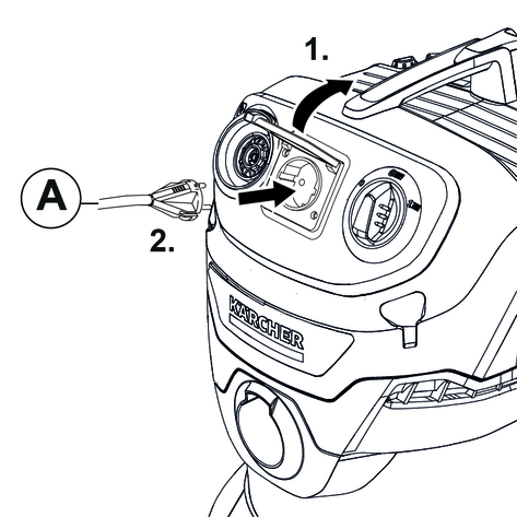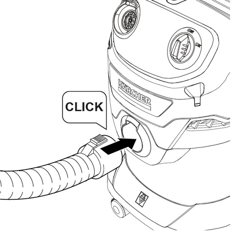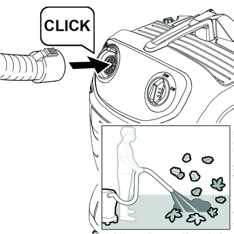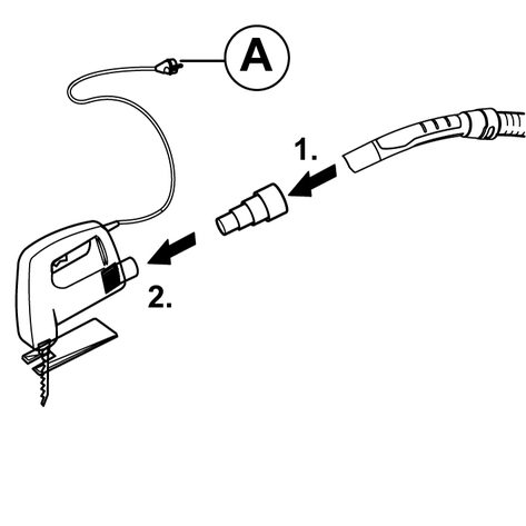Beachten Sie, dass das Elektrowerkzeug betriebsbereit ist, sobald es an der Gerätesteckdose angeschlossen ist.Den Saugschlauch anschließen.