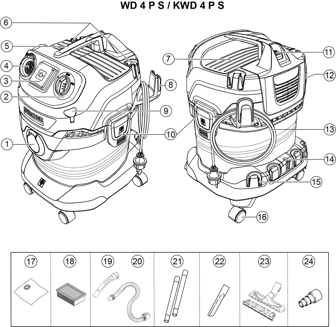 Die Abbildung der Gerätebeschreibung zeigen das Gerät mit der bestmöglichen Ausstattung (WD 4 P S / KWD 4 P S).