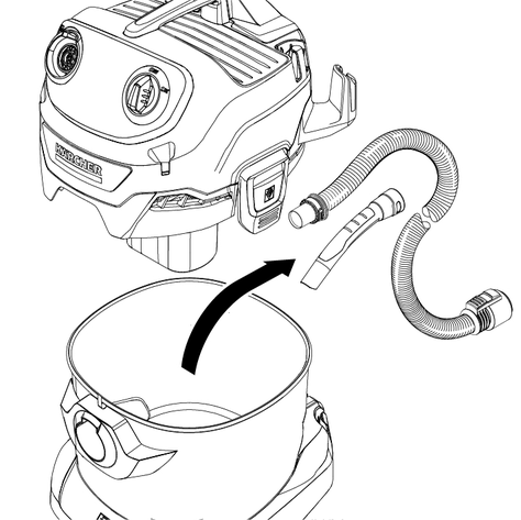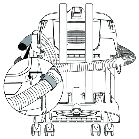 Der Saugschlauch kann um den Gerätekopf gewickelt und mit Hilfe der Schlauchmanschette am Gerätekopf befestigt werden.