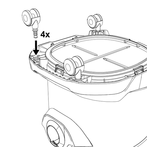 Vor erster Inbetriebnahme den Inhalt aus dem Behälter entnehmen und die Lenkrollen montieren.