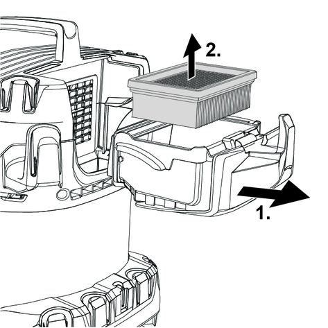 Prüfen Sie vor Inbetriebnahme den Flachfaltenfilter auf Beschädigungen und ersetzen Sie ihn ggf.Saugen Sie nur mit einem trockenen Flachfaltenfilter.Den Filterbeutel rechtzeitig ersetzen, da ein zu voller Filterbeutel beschädigt werden könnte. Der Füllgrad des Filterbeutels ist abhängig vom aufgesaugten Schmutz. Bei Feinstaub, Sand usw. sollte der Filterbeutel häufiger ausgetauscht werden.