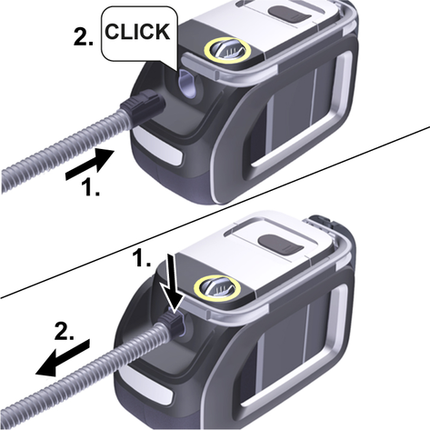 Vie suihkuimuletkua laitteen suihkuimuletkuliitäntään niin pitkälle, kunnes se kuultavasti lukkiutuu.