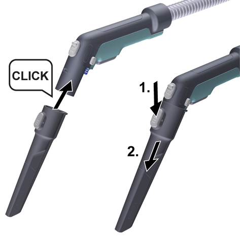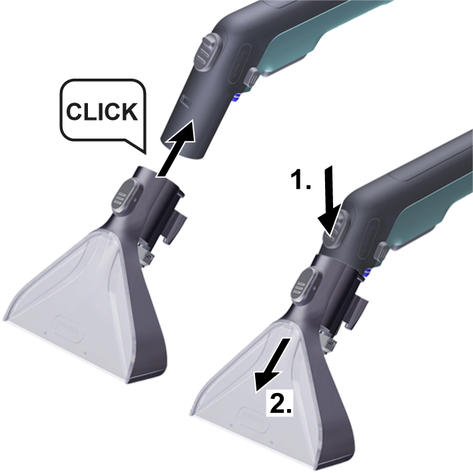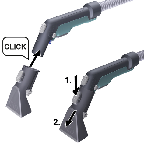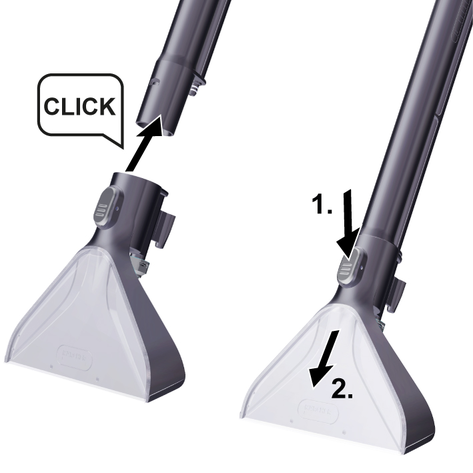 Lattianpesu- ja pehmustepesusuuttimen puhdistamiseksi on suutinpidike kiertämällä irrotettava ja poistettava suuttimen kanssa.