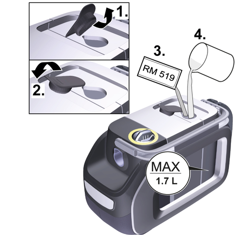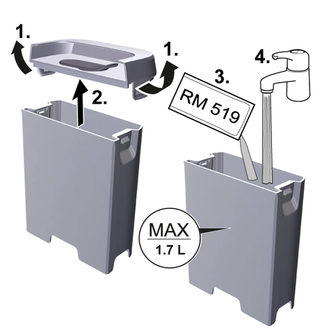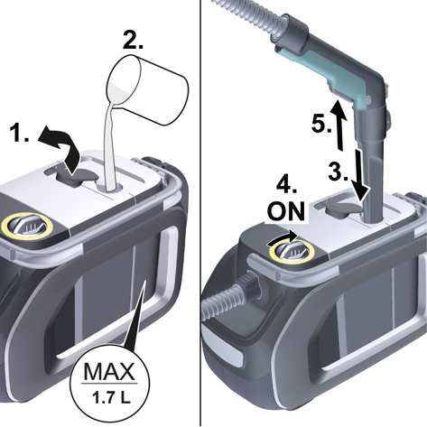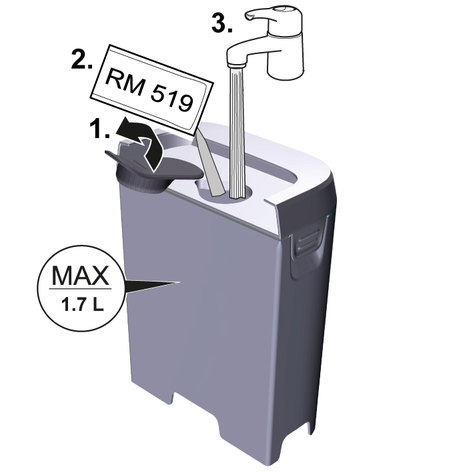Avaa ja poista säiliön kansi, katso luku Puhdasvesisäiliön täyttö