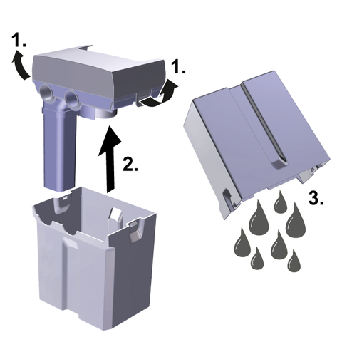 Avaa kaksi säiliön sivulla olevaa tulppaa, irrota säiliön kansi ja hävitä likavesi.