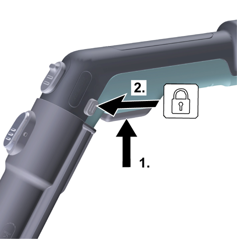 Käännä laitekytkin asentoon I (päällä) ja paina ja pidä samanaikaisesti painettuna kahvassa olevaa vipua sumutusta varten.