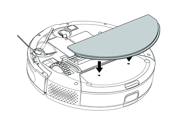 Asegúrese de que el soporte del paño para fregar y el paño para fregar están correctamente instalados, véase el capítulo Instalación del soporte del paño para fregar con paño para fregar.