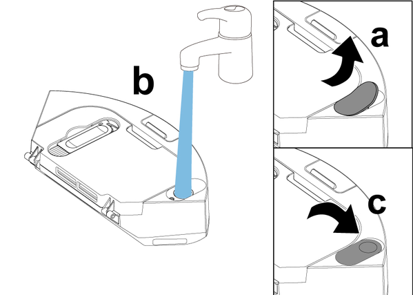 El contenedor de polvo 2 en 1 con depósito de agua o el contenedor de polvo está lleno.