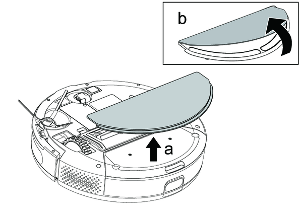 Desconecte el robot de limpieza, véase el capítuloApagado del robot de limpieza.