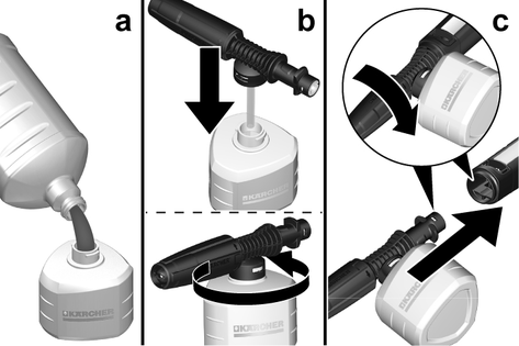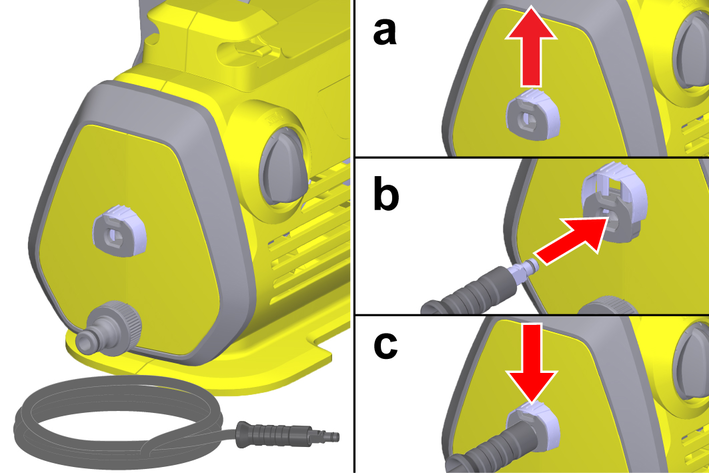 ![]() | Do not point the high-pressure jet at people, animals, live electrical equipment or at the device itself. Protect the device from frost. |