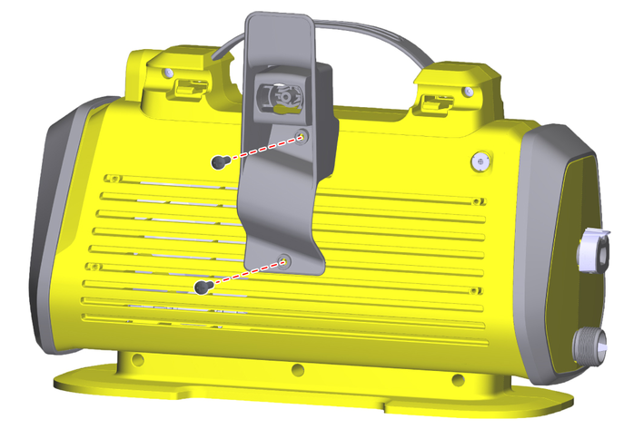 Fasten the storage for the high-pressure gun to the device with the two screws.