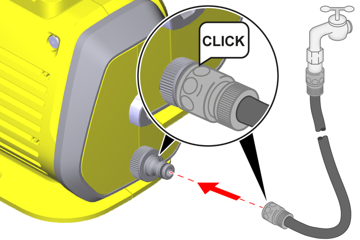 If the lever on the high-pressure gun is released, the pressure switch switches the pump off and the high-pressure jet stops. If the lever is pressed, the pump switches on again.