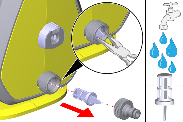 Check the sieve for damage before inserting it into the water connection. Replace a damaged sieve immediately.