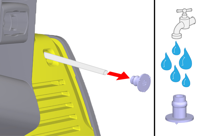 Wait for a maximum of 1 minute until no more water escapes from the high-pressure connection.