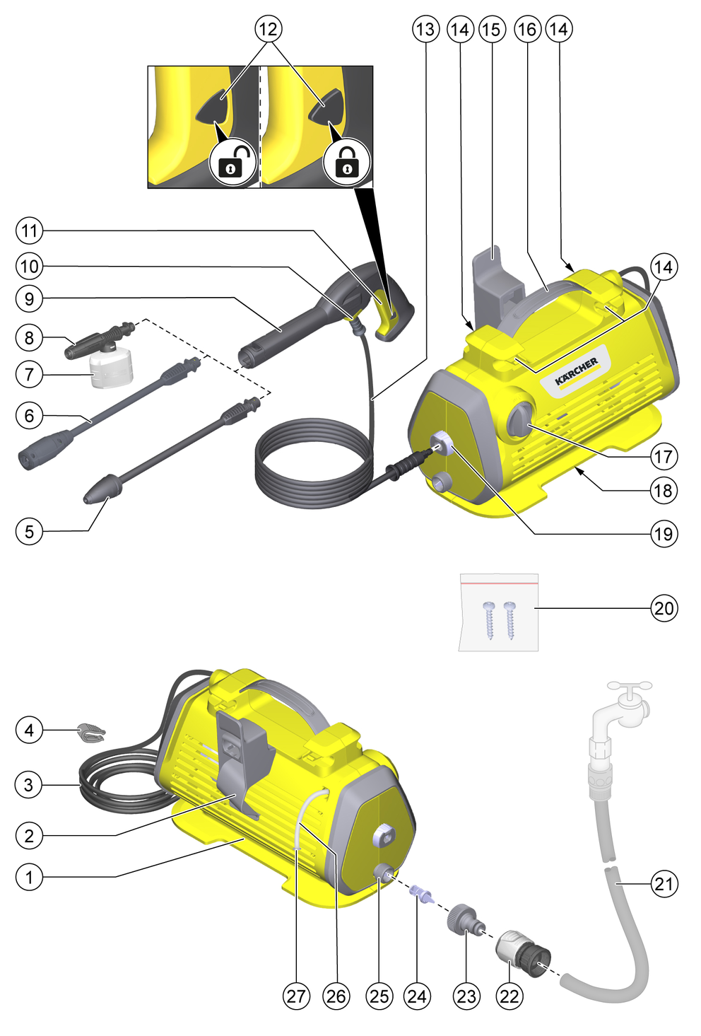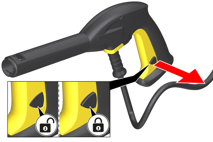 The lock blocks the lever of the high-pressure gun and prevents the device from starting unintentionally.