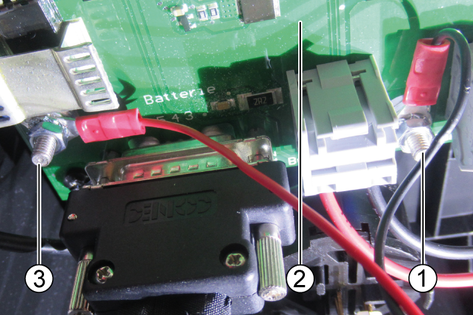 Nasaďte krúžkové káblové očko so sploštenou stranou (ukazujúc smerom k svorke batérie) a zaistite ho maticou (2x).