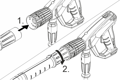 Das Strahlrohr mit der Hochdruckpistole verbinden und handfest anziehen (EASY!Lock).