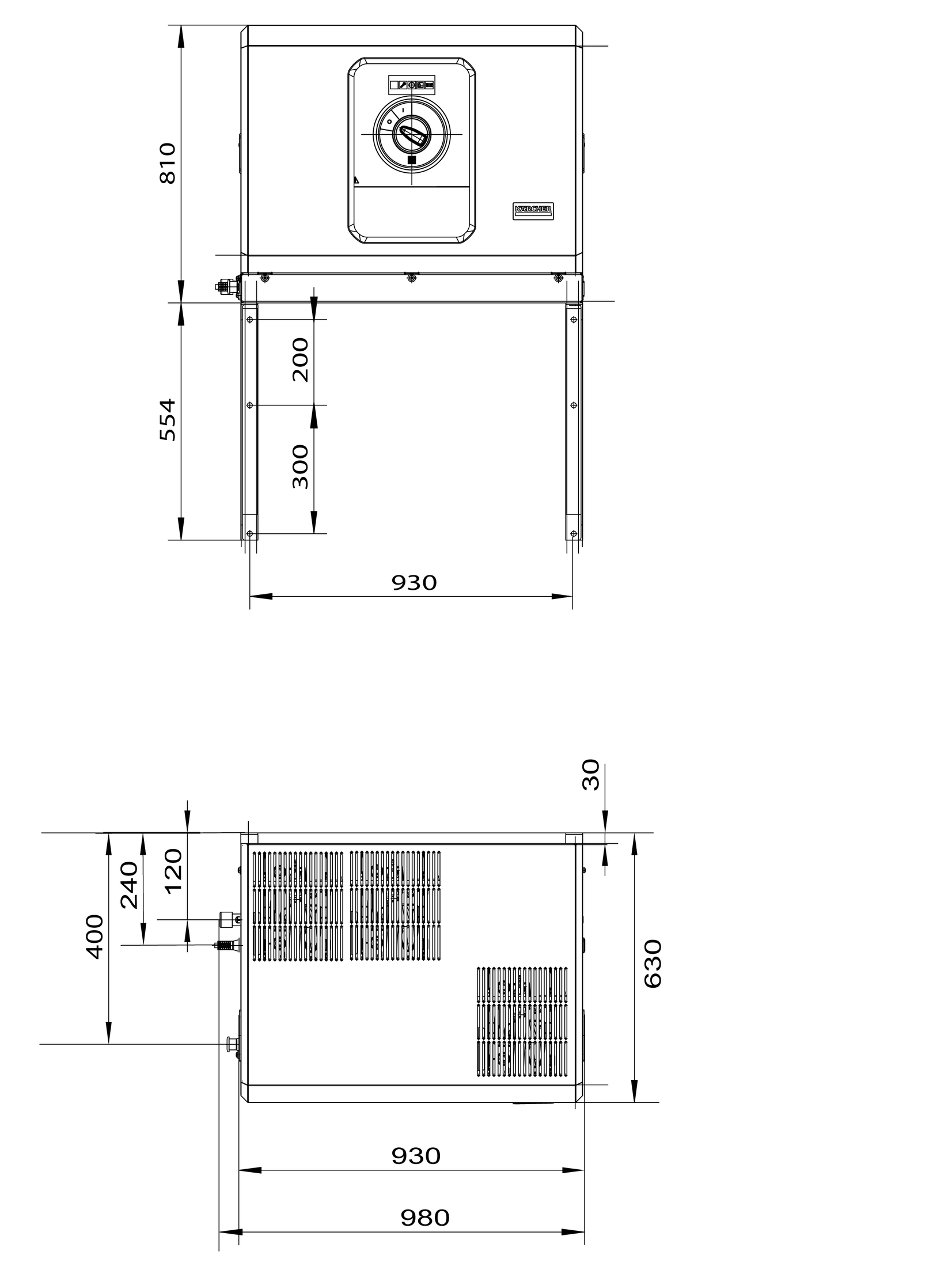 Anläggningen monteras på en vägg eller installeras på en ram (påbyggnadssats, tillval).