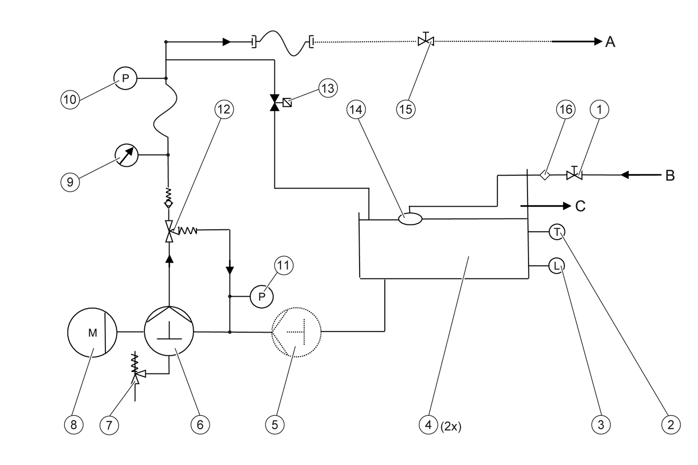 Systemet matar vatten med högt tryck till nedströms högtryckstvättanordningar.