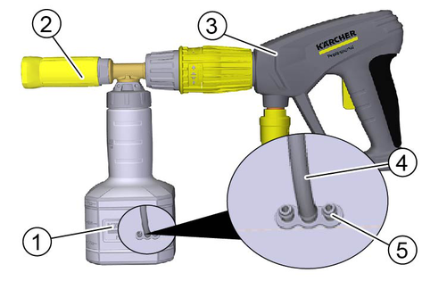 Använd endast tillbehör med ett märktryck på ≥200 bar (20,0 MPa). Vid drift med varmvatten måste tillbehöret dessutom vara temperaturbeständigt för temperaturer på ≥80 °C.
