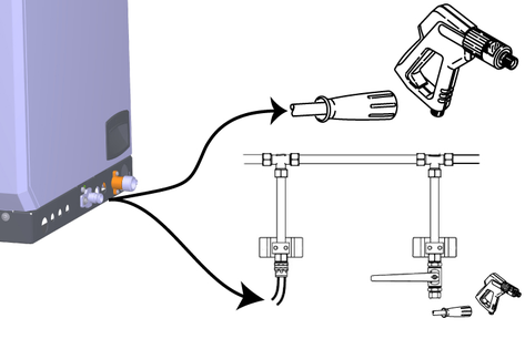 | Az érvényes előírások szerint a készüléket soha nem lehet rendszerleválasztó nélkül üzemeltetni az ivóvízhálózaton. Győződjön meg róla, hogy a magasnyomású mosó üzemeltetéséhez használt házi vízautomata csatlakozása az EN 12729 szabvány szerint BA típusú rendszerleválasztóval van ellátva. A rendszerleválasztón keresztüláramló víz nem ihatónak minősül. A rendszerleválasztót mindig a vízellátáshoz csatlakoztassa, ne közvetlenül a készülékhez. |