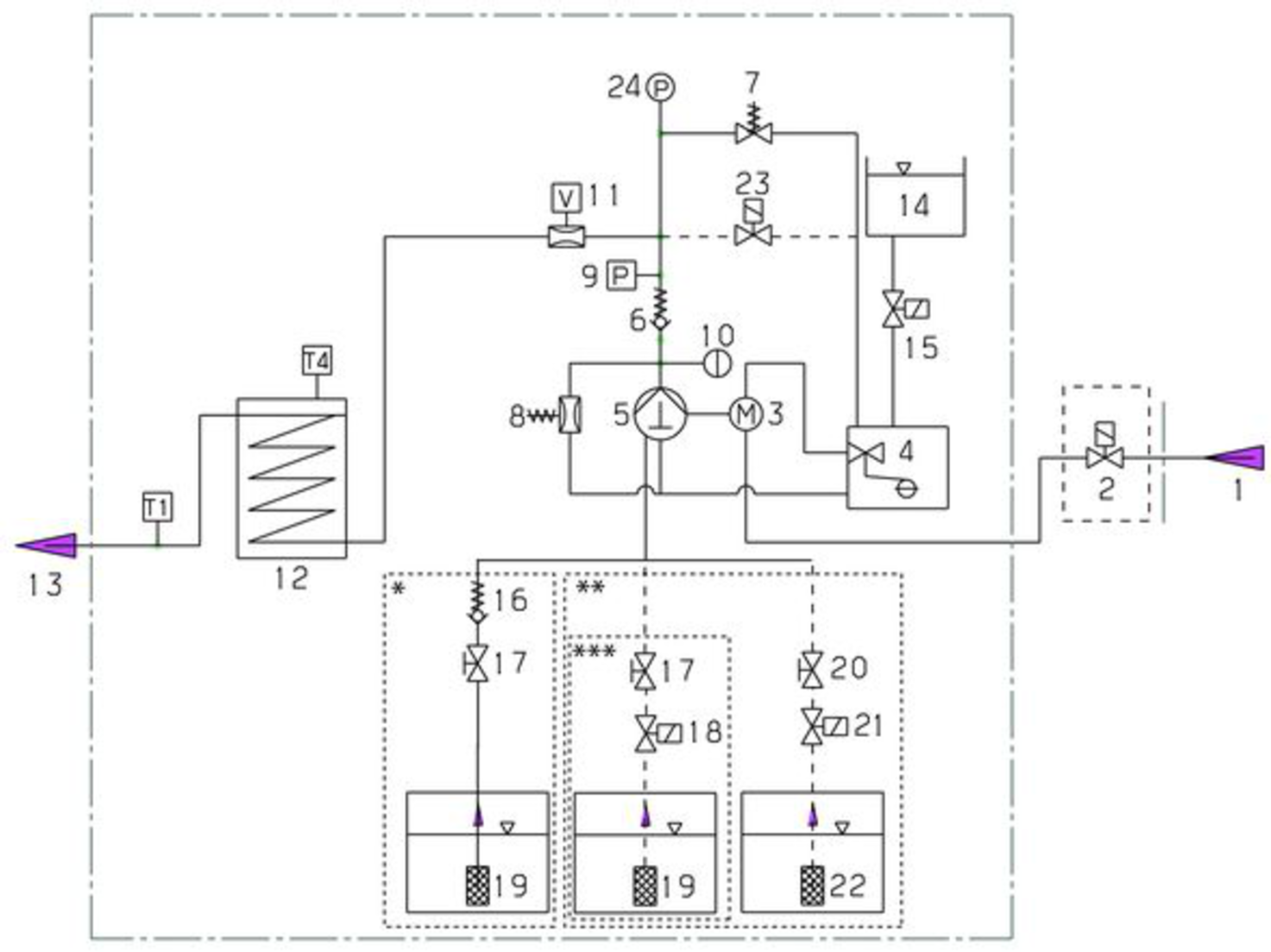 A maximális megengedett rendszernyomás túllépése esetén a biztonsági szelep kinyílik, hogy kiengedje a rendszerben lévő nyomást. A biztonsági szelep beállítását és plombálását a gyártó biztosítja. A beállítást az ügyfélszolgálat biztosítja.