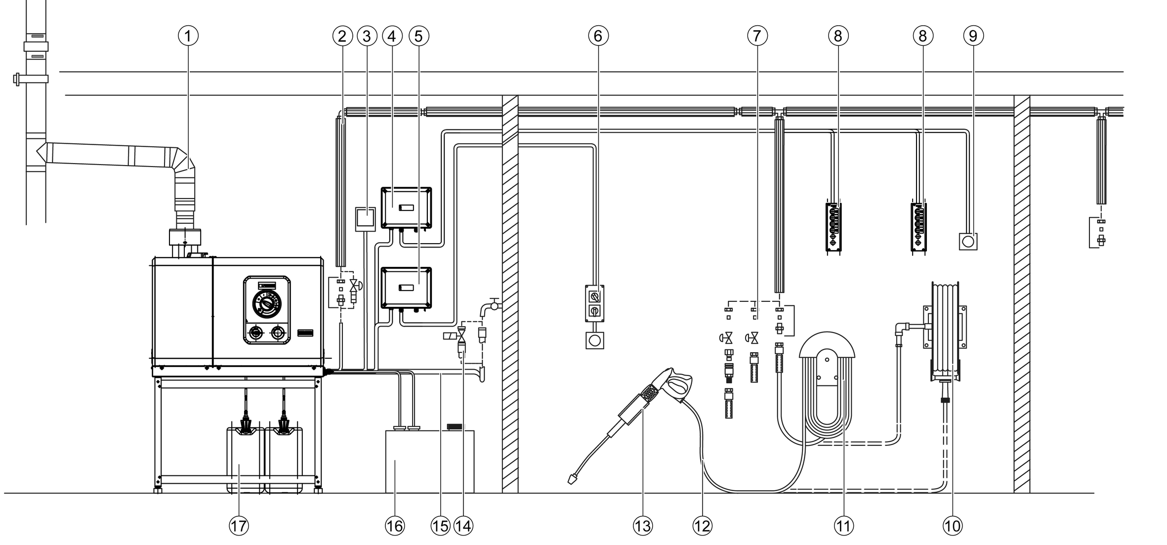 A többi munkahely a rendszer kialakításától függően a csapokhoz csatlakoztatott tartozékokon (permetező berendezésen) található. A távirányítók opcionálisan telepíthetők ezeken a munkahelyeken.