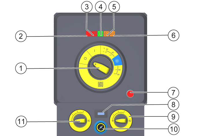 Am Gerät wird die Anlage ein- und ausgeschaltet sowie die Wassertemperatur eingestellt. Zudem können die Reinigungsmitteldosierung eingestellt und Fehlermeldungen eingesehen werden.