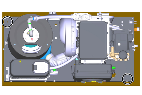 Nach Abschalten des Geräts über die Hochdruckpistole öffnet nach Ablauf der Betriebsbereitschaftszeit ein im Hochdrucksystem angeordnetes Magnetventil. Dadurch wird der aufgebaute Druck im Hochdrucksystem abgebaut.