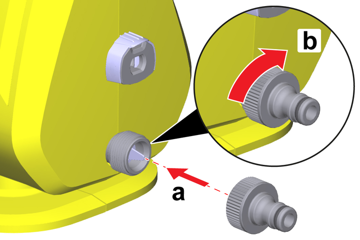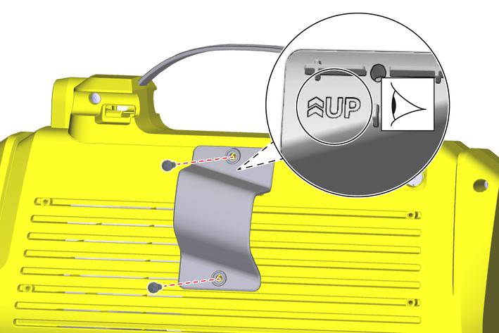 Fasten the storage for the high-pressure gun to the device with the two screws.