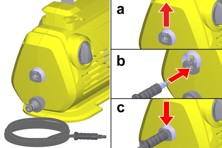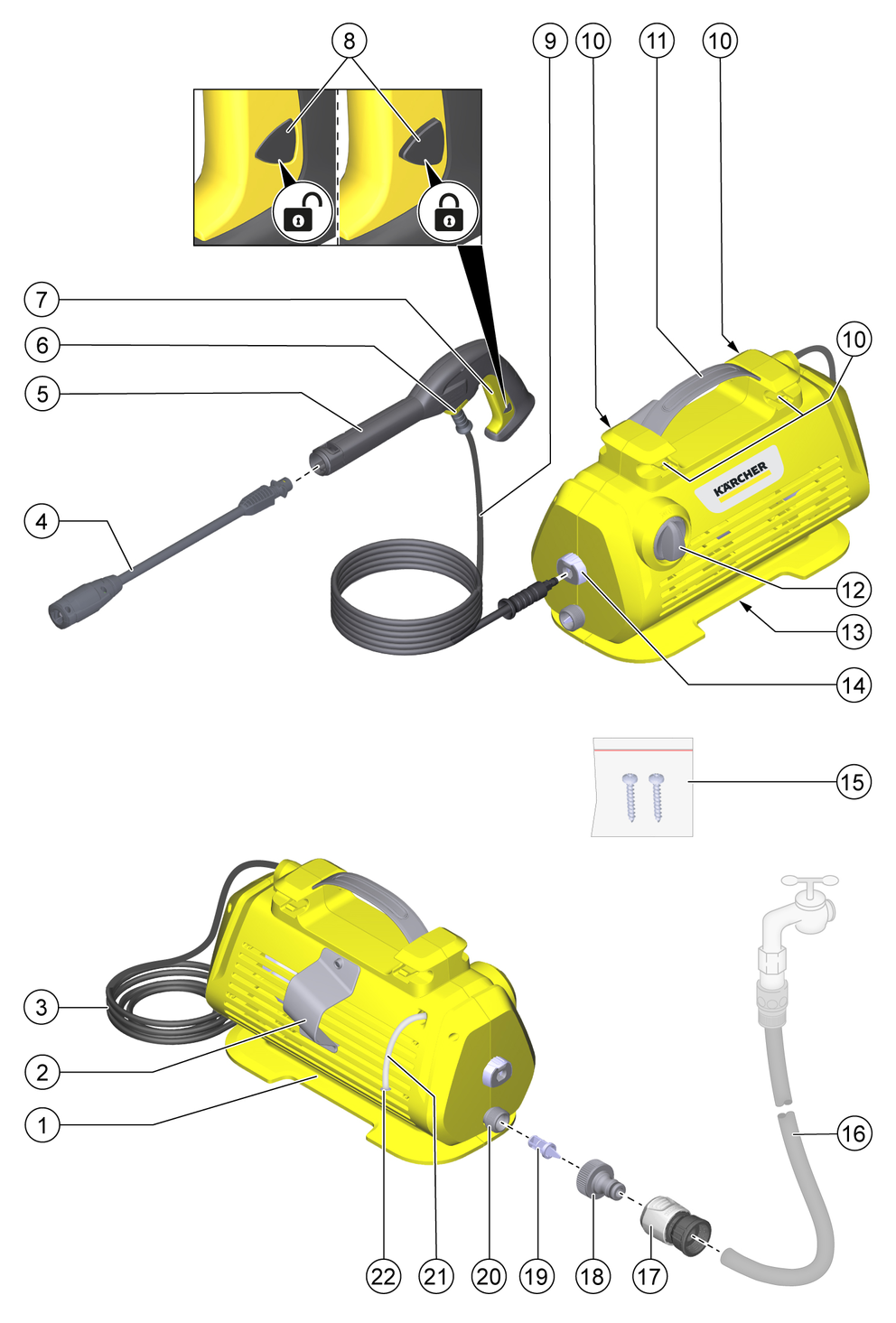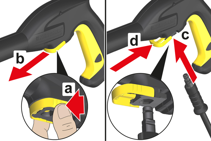 The lock blocks the lever of the high-pressure gun and prevents the device from starting unintentionally.