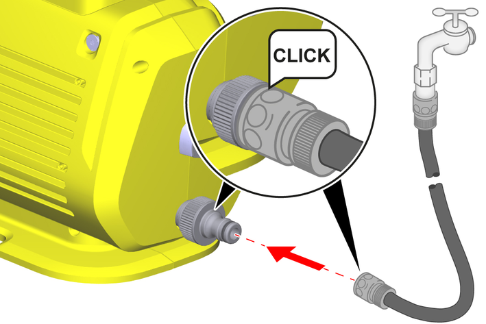 If the lever on the high-pressure gun is released, the pressure switch switches the pump off and the high-pressure jet stops. If the lever is pressed, the pump switches on again.
