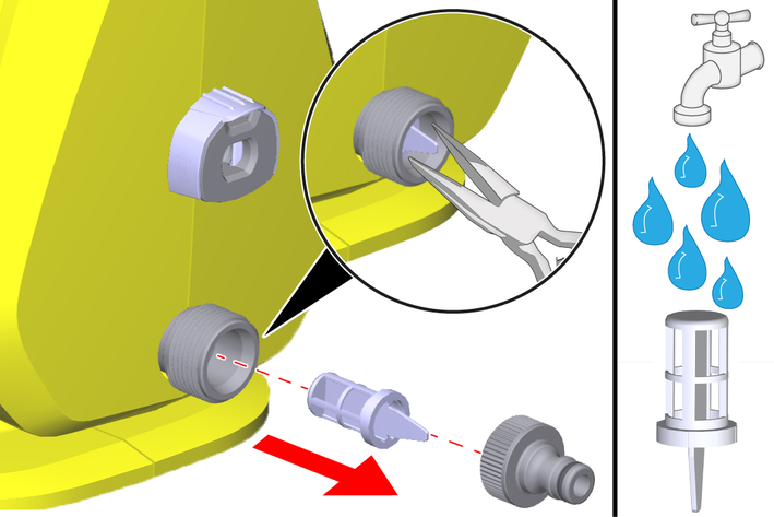 Check the sieve for damage before inserting it into the water connection. Replace a damaged sieve immediately.Do not operate the device without a sieve.Clean the sieve in the water connection if necessary.
