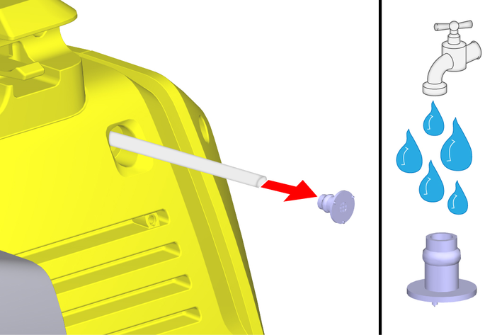 ![]() | Do not point the high-pressure jet at people, animals, live electrical equipment or at the device itself. Protect the device from frost. |