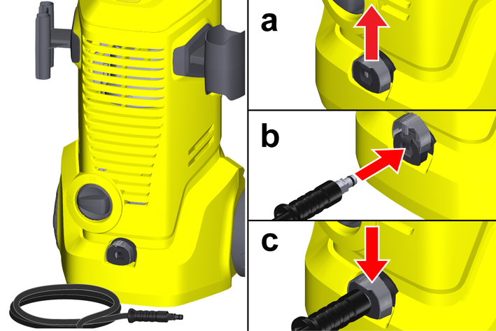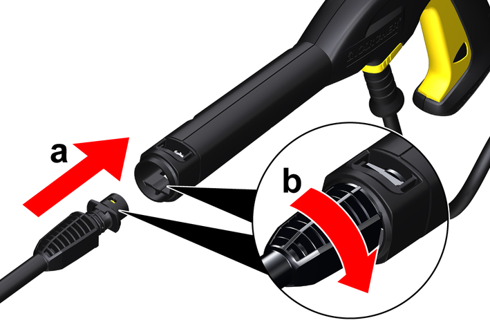 Připojte vysokotlakou hadici k vysokotlaké pistoli.