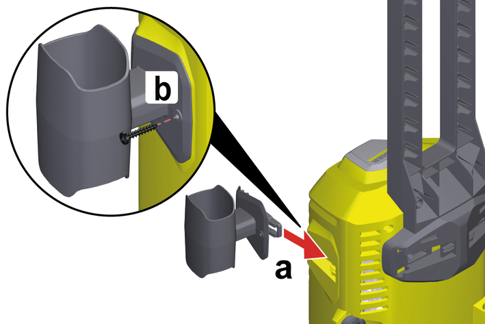 Úložiště pro vysokotlakou pistoli zasuňte do uchycení na přistroji.