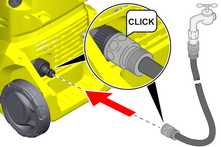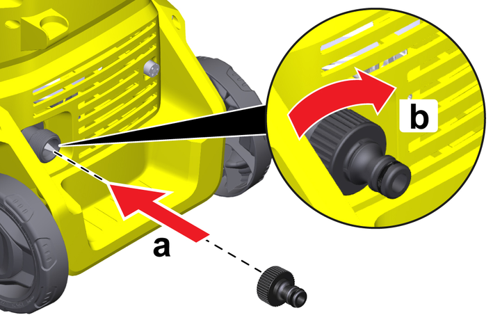 Našroubujte spojku pro vodní přípojku na vodní přípojku přístroje.