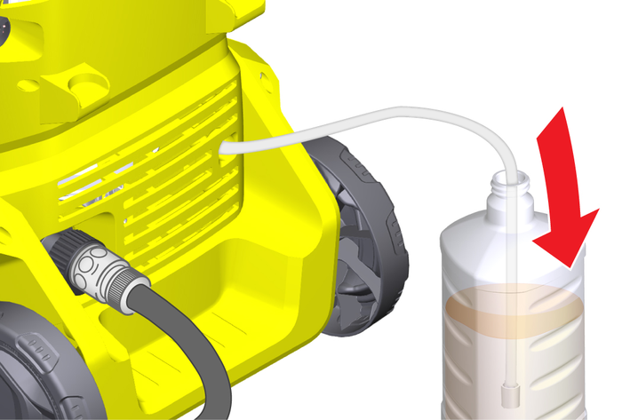 Vysokotlakou trysku vypláchněte zepředu vodou.