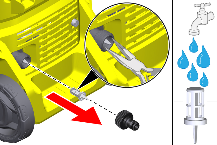 Vytáhněte síto ve vodní přípojce pomocí plochých kleští.