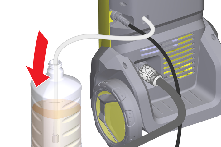 Starta maskinen utan högtrycksslang och vänta 2 minuter tills vattnet kommer ut ur högtrycksanslutningen utan luftbubblor.