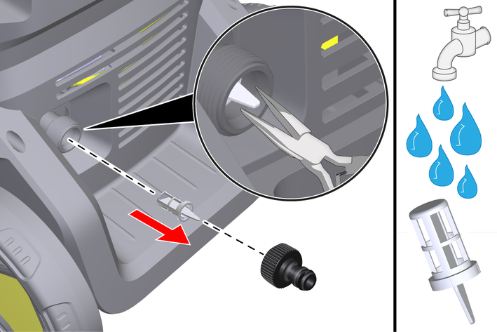Dra av filtret från sugslangen för rengöringsmedlet.