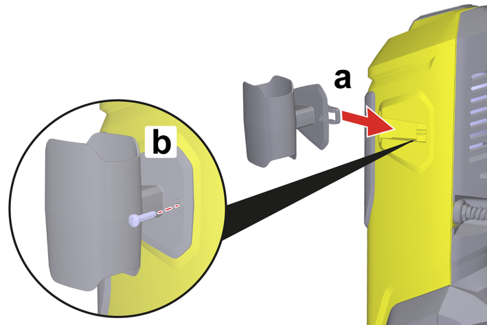 Skjut in förvaringen för högtryckspistolen i fästet på maskinen.