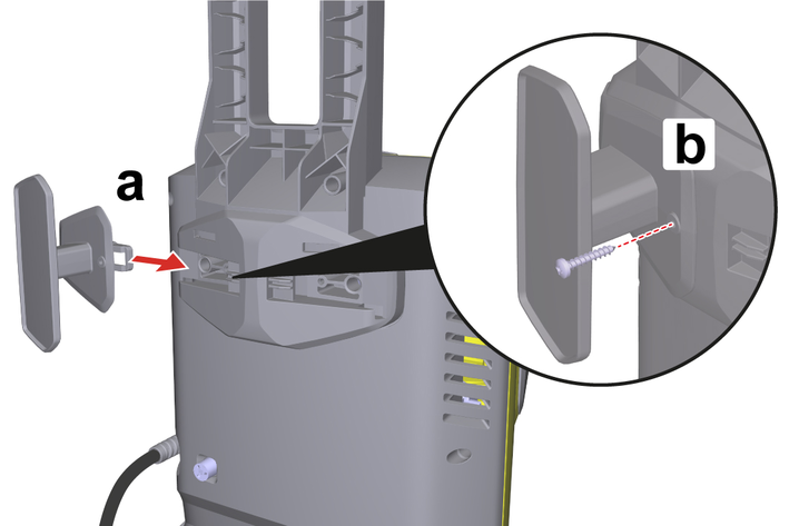 Montera förvaringen för högtrycksslang/nätanslutningsledningen: