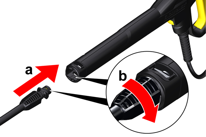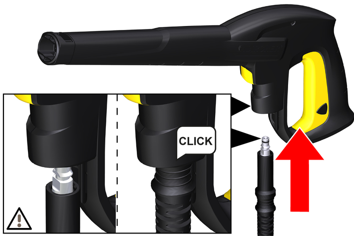 Aseta korkeapaineletku korkeapainepistooliin niin, että se lukittuu kuuluvasti.