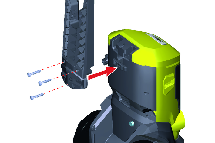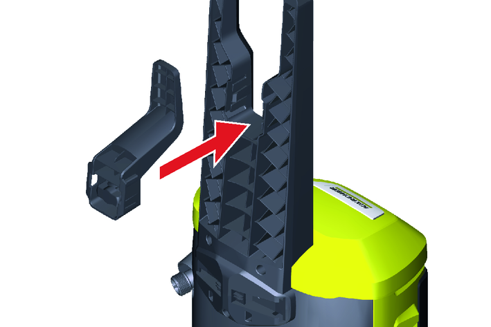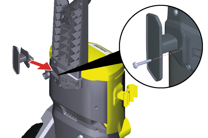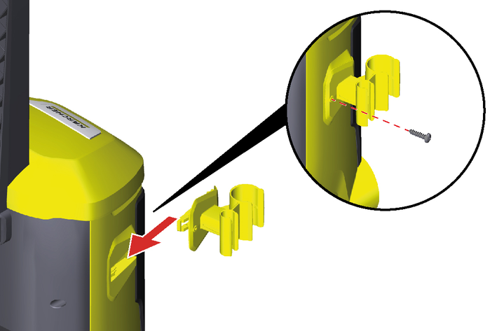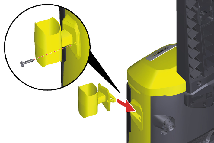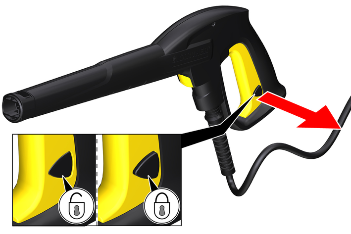 Stick in förvaringen för högtrycksslang i fästet i mitten av transporthandtaget.