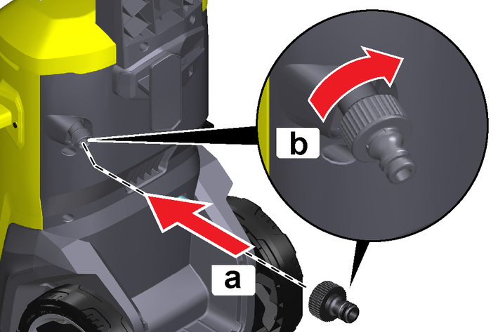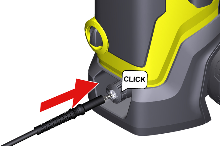 Yhdistä korkeapaineletku pikaliittimeen niin, että se lukittuu kuuluvasti.