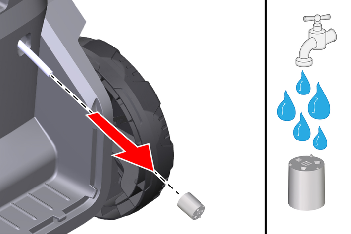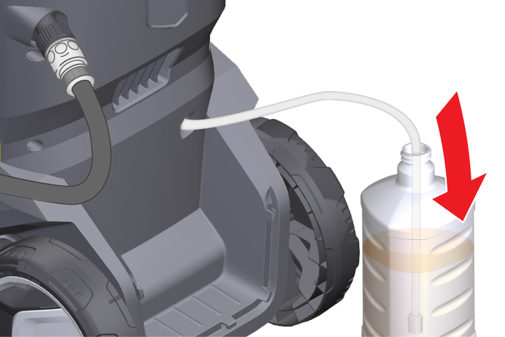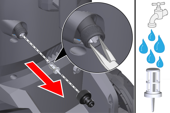 Rengör filtret på insugningsslangen för rengöringsmedel.