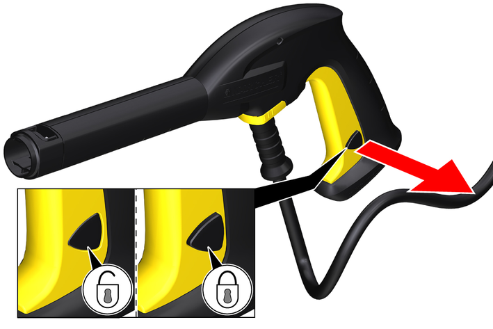 The lock locks the lever of the high-pressure gun and prevents the device from starting unintentionally.