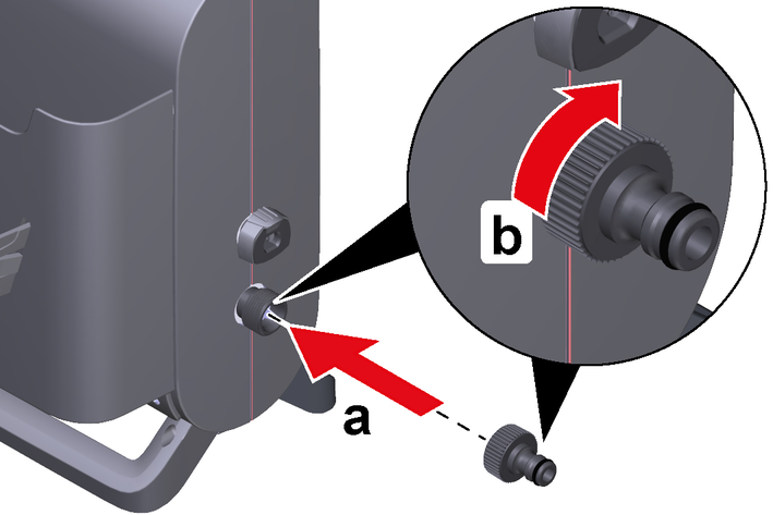 Screw the water connection coupling onto the water connection on the device.