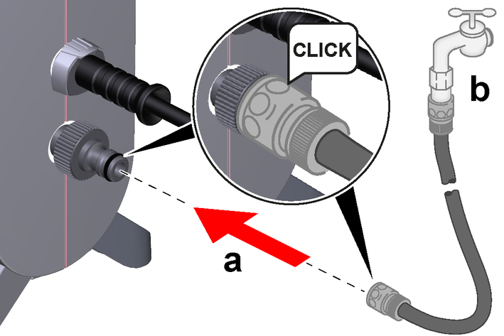 Screw the coupling onto the water connection.